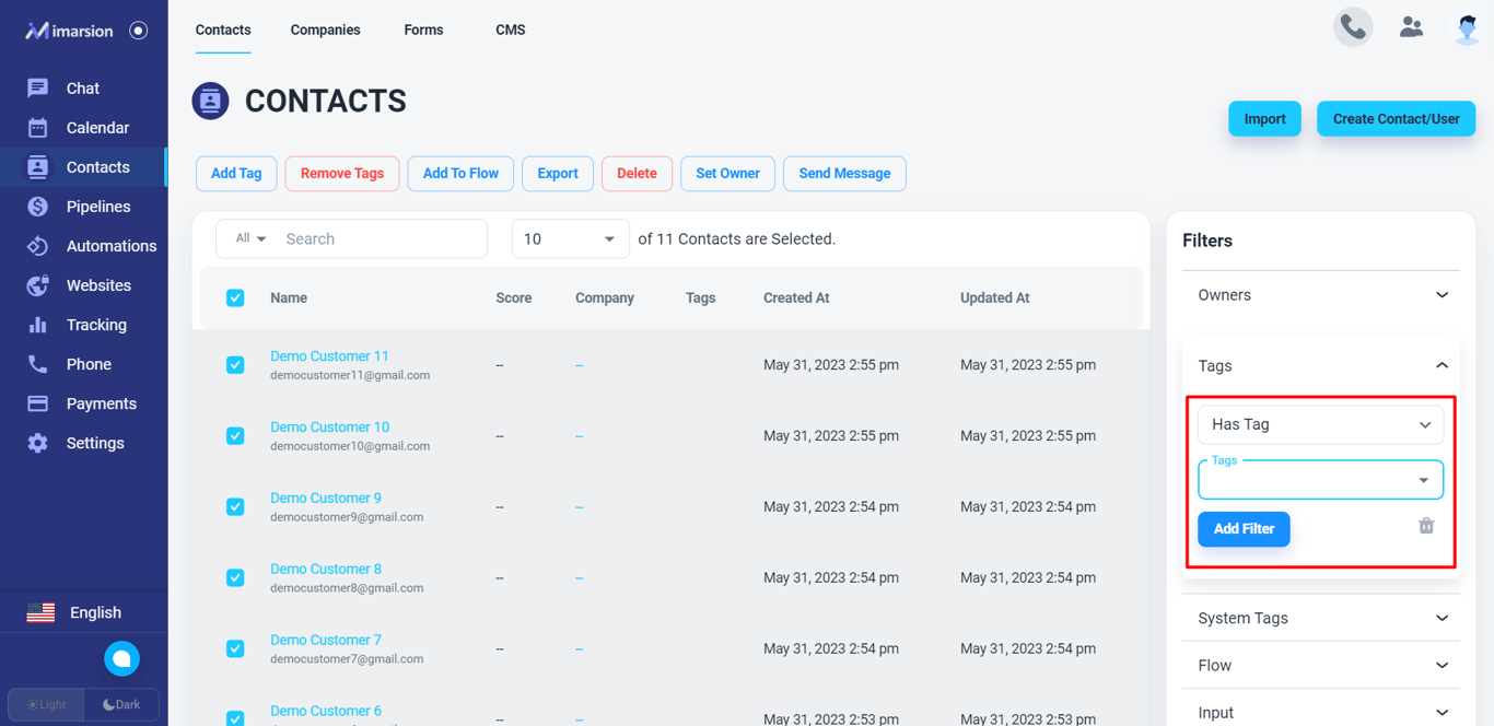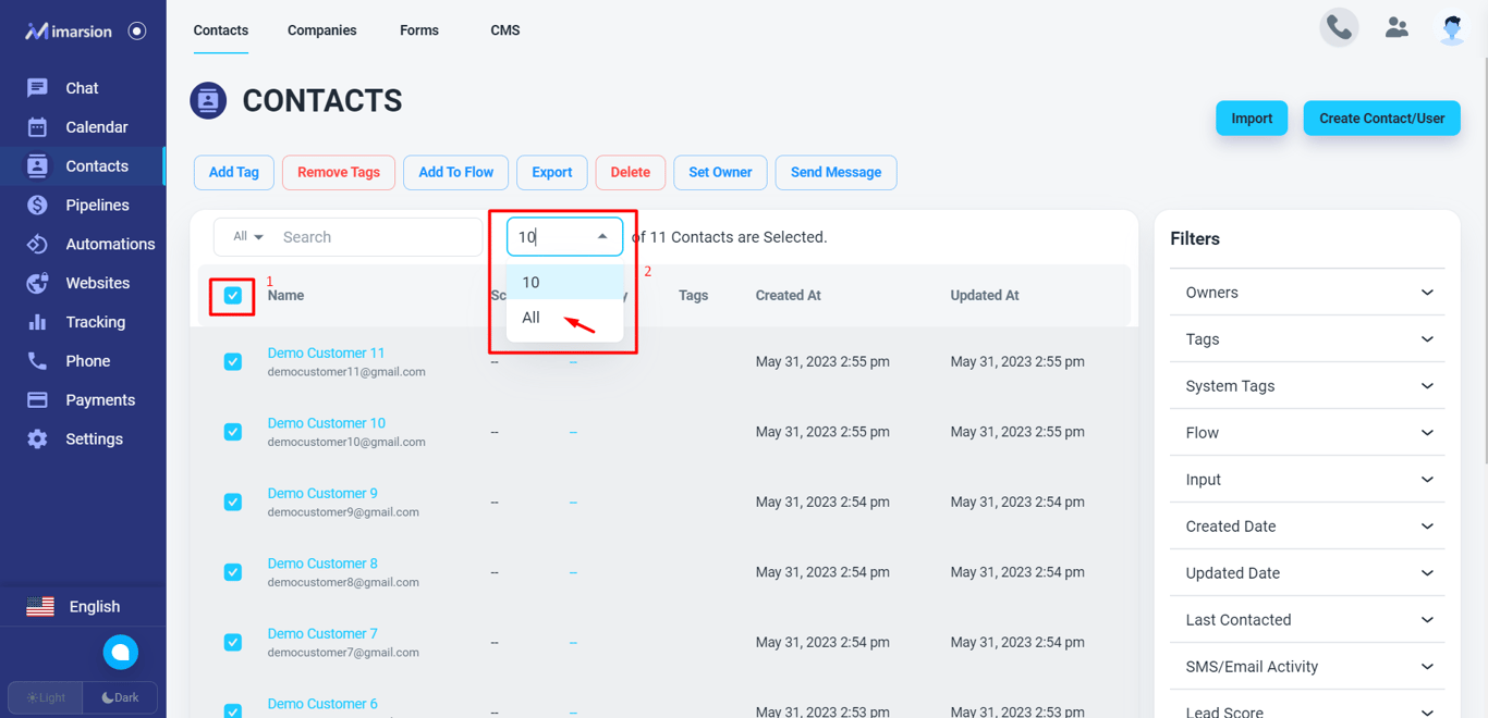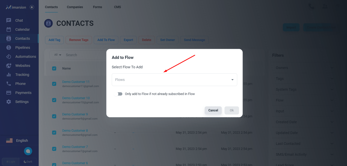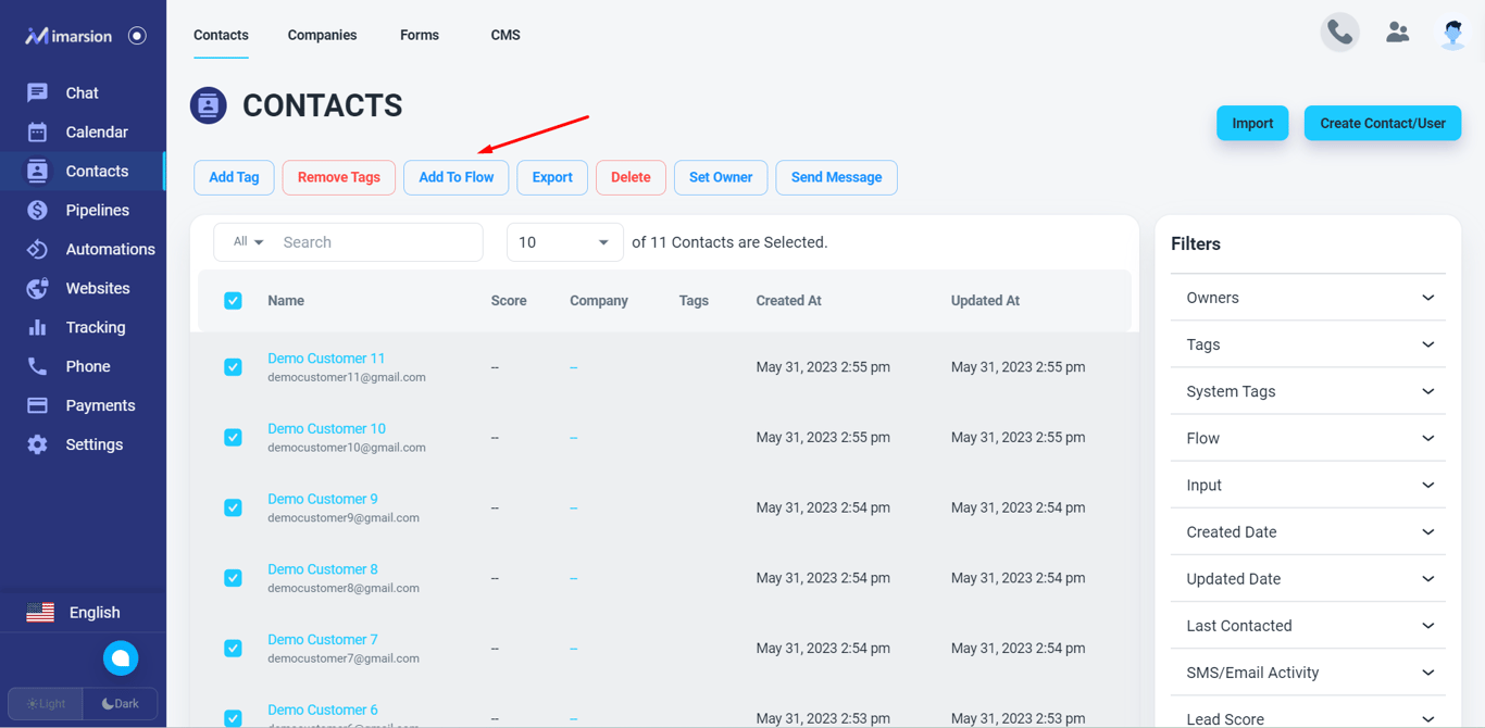 After selecting all contacts, click on the ‘Add To Flow’ button to add all contacts to a flow