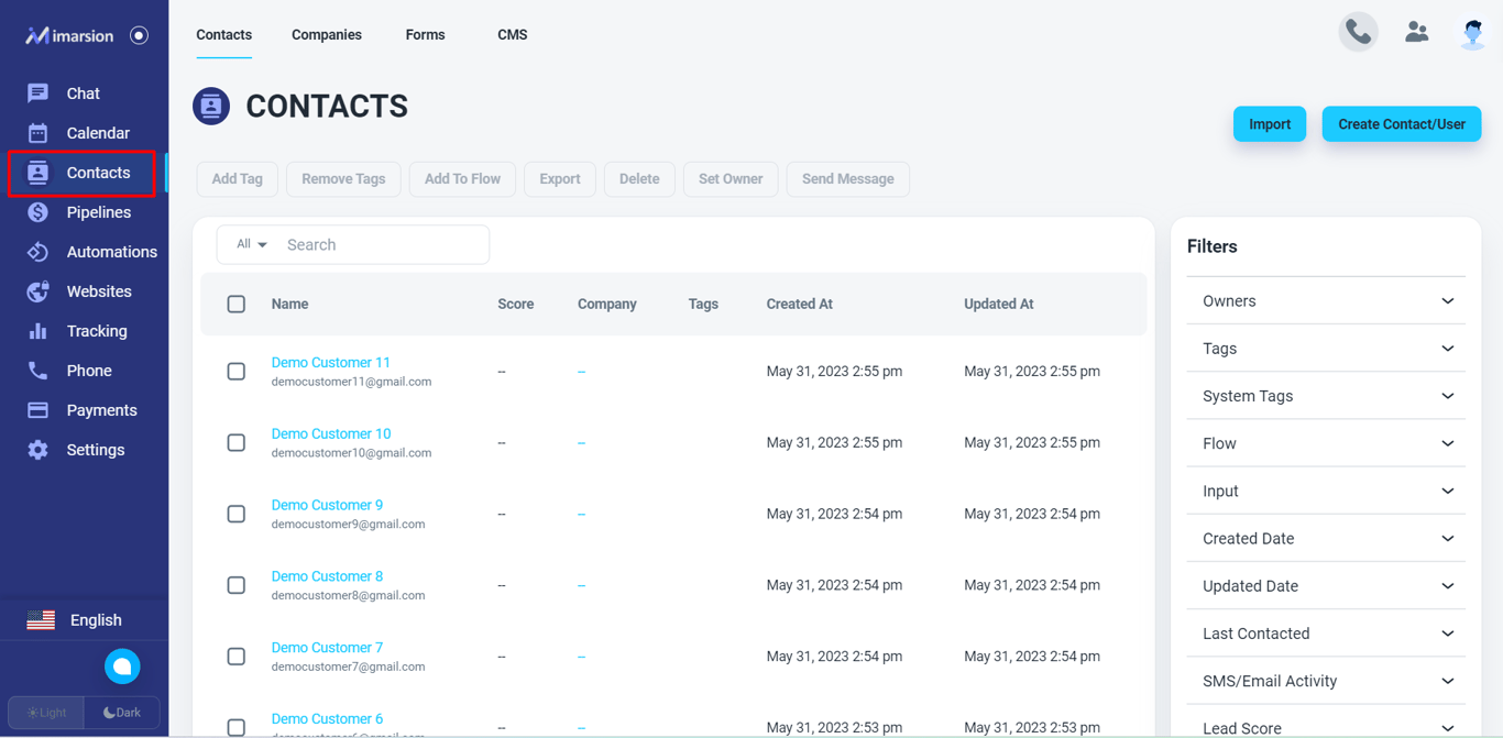 Please, navigate to the ‘CONTACTS’ on the left side menu. You will get the list of all contacts