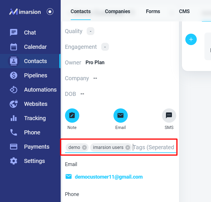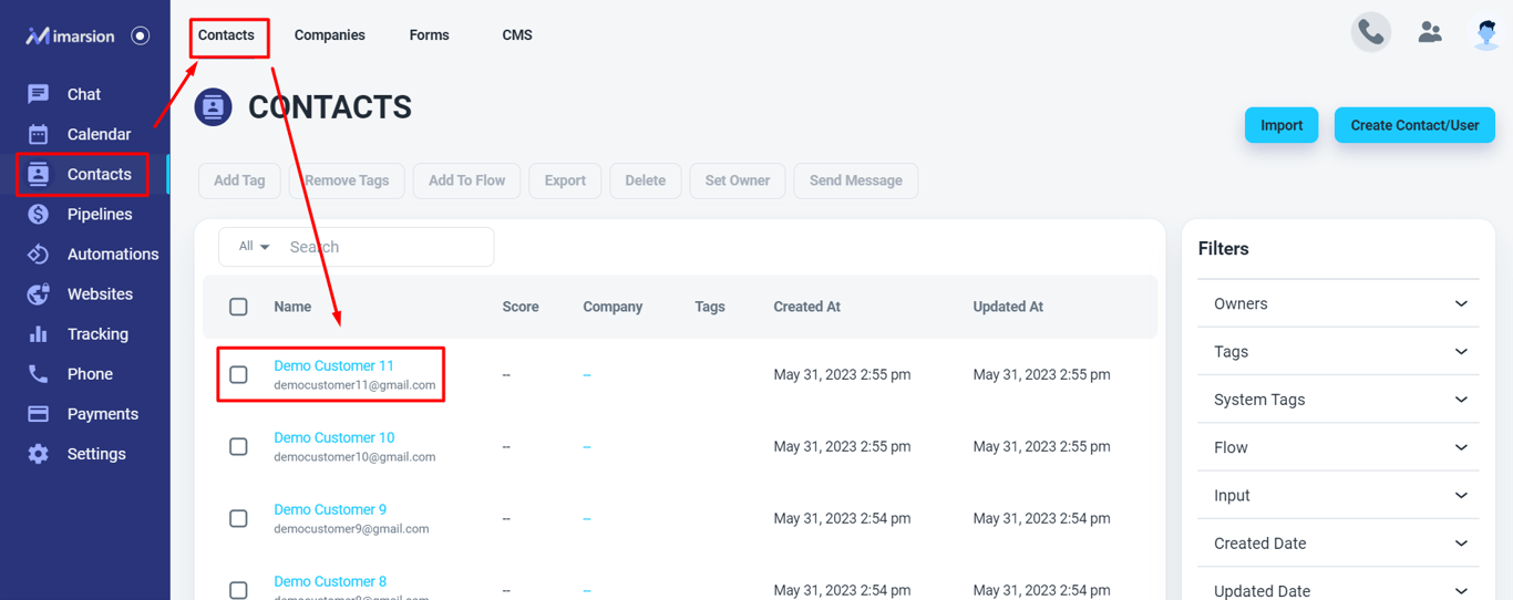 Please, navigate to the “Dashboard’ on the left menu bar and click on the ‘Contact’ on the top menu bar.