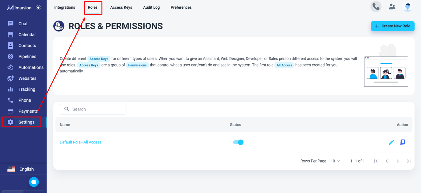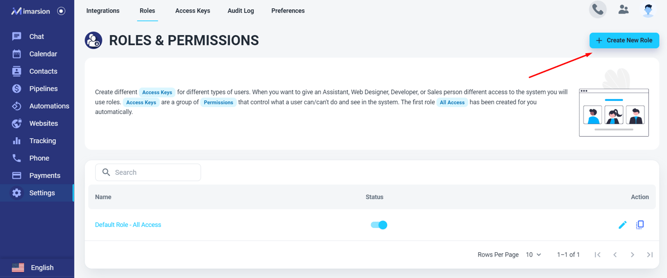 💡 No need for this step if you want to provide users with full access to your account. Please use the ‘Default Role - All Access’ .