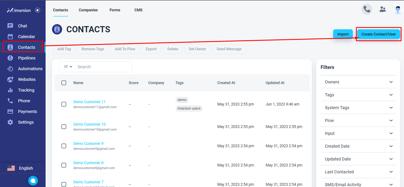 Please, create a contact for the user if you don’t have that already. Please, click on the ‘Database’ menu on the left menu bar. Once the page is loaded, click on the ‘Create Contact/User’ button.
