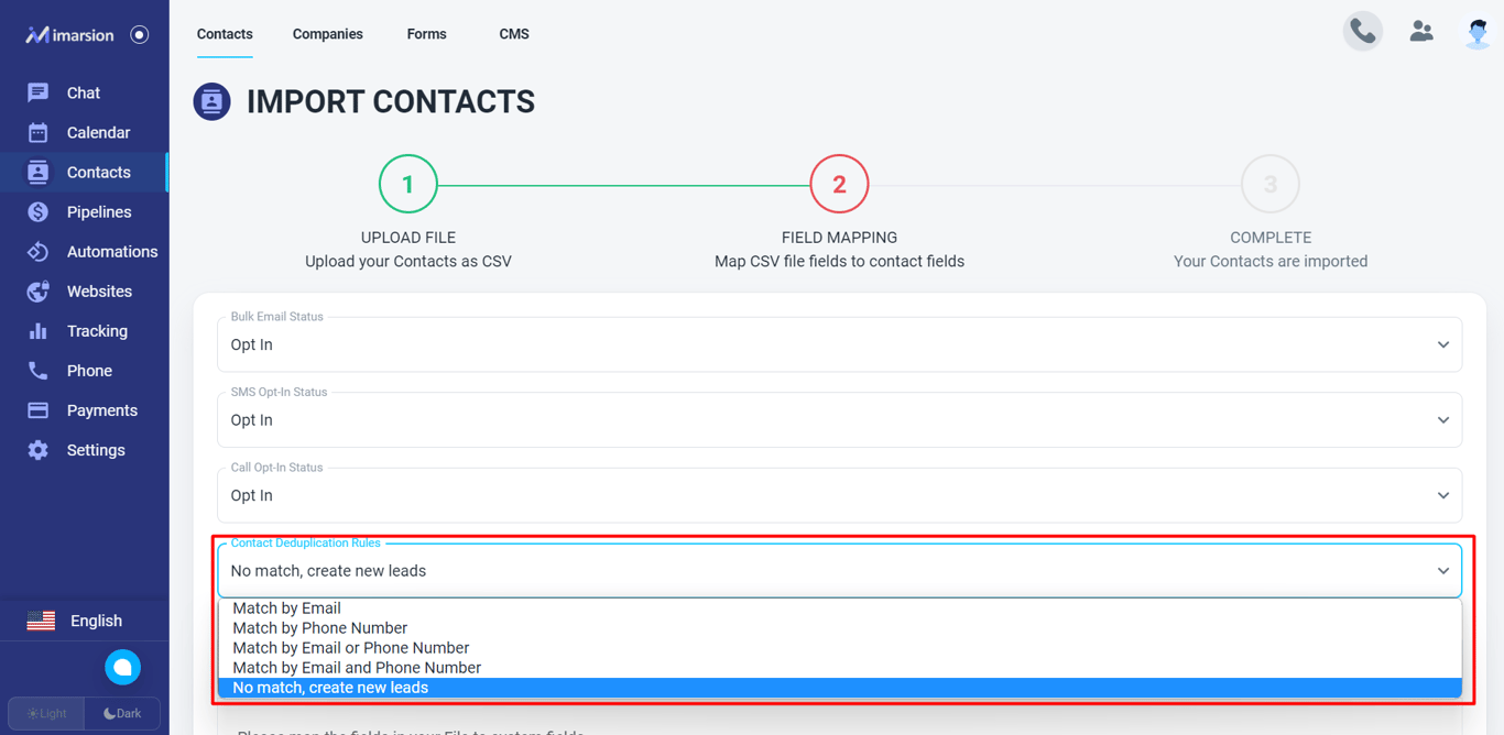 - No match, create new leads By selecting this option your uploaded Pipeline will not match with existing Pipeline and create new Pipeline (you might get duplicates if Pipeline are already in the system)